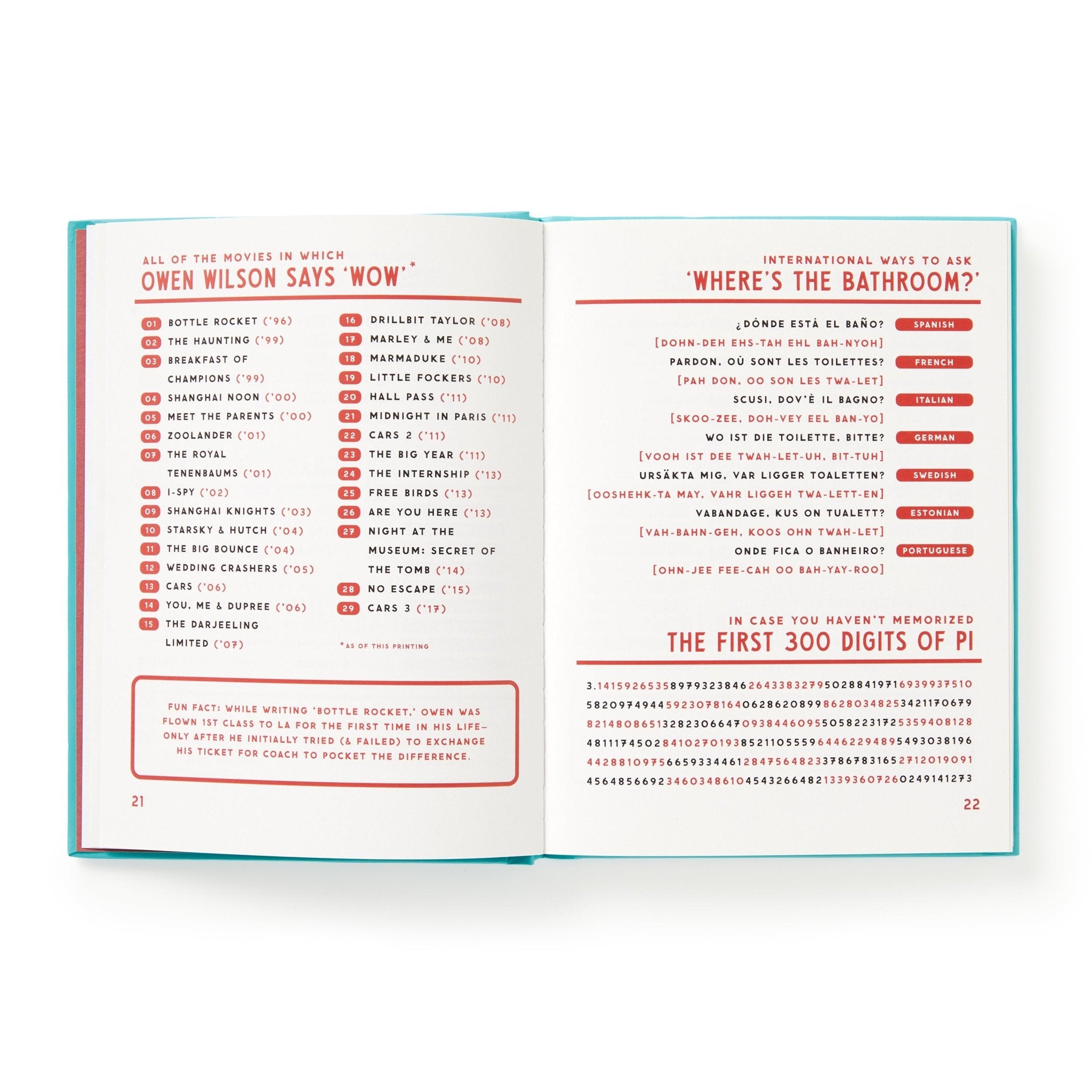 They say knowledge is power—so just imagine the superiority you'll feel with all this useless junk, er, power. Seriously, which are you going to use more—some dumb algebra, or a list of what they call corndogs in various countries? I think we all know the answer. Hard-bound, debossed artwork cover.